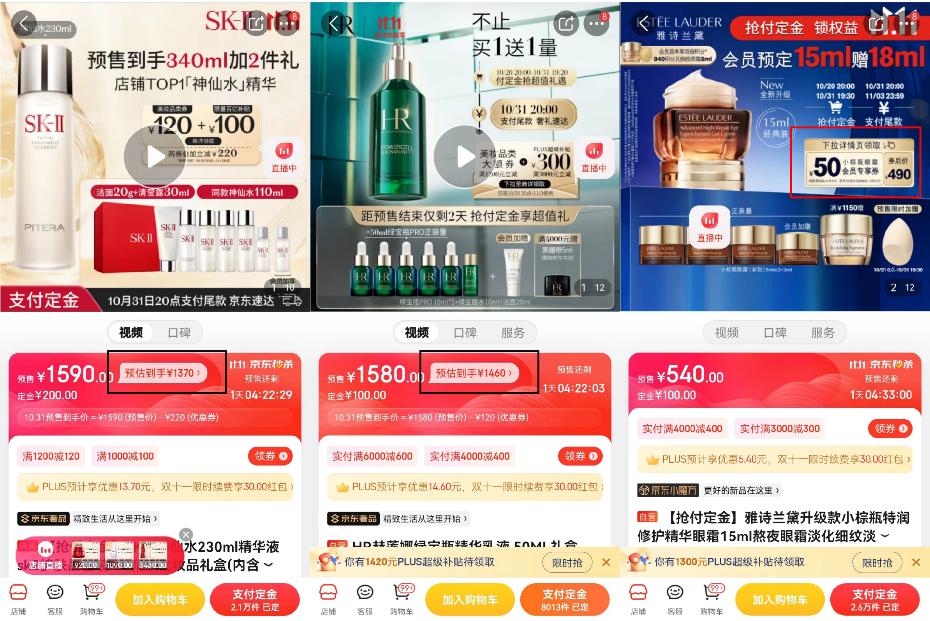 除上述产品外,更多大牌明星口碑爆款好物也以超低价集结京东新百货11.11。备受万千女性挚爱的SK-II神仙水230ml量到手价仅1370元,并赠送110ml神仙水、20g洁面、30ml清莹露等超值好礼,赠品和头部主播直播间差异无几的情况下,单瓶便宜220元。赫莲娜王牌产品绿宝瓶精华50ml,京东11.11到手价仅1460元,赠送同款精华、10ml精华水、20ml洁面,满4000元再加赠5ml面霜,价格和赠品都非常美丽。此外,还有雅诗兰黛小棕瓶眼霜低至4.1折,买15ml赠18ml,买50ml赠52ml。