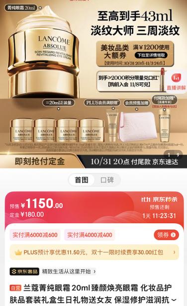 11.11的超强折扣力度也是不少女生选择“升级”护肤装备的好机会。能三周淡纹的兰蔻菁纯眼霜长年位列贵妇眼霜的前三名,堪称抗老届的王炸,特别适合轻熟肌的眼周保养,而且质地轻盈好推开,敏感肌也能用。京东PLUS会员下单兰蔻菁纯眼霜,1150元至高到手43ml,也是相当于5折的优惠力度,10月31日付尾款后即可享受京东速达的物流服务,眼纹干纹多的姐妹可以闭眼入。