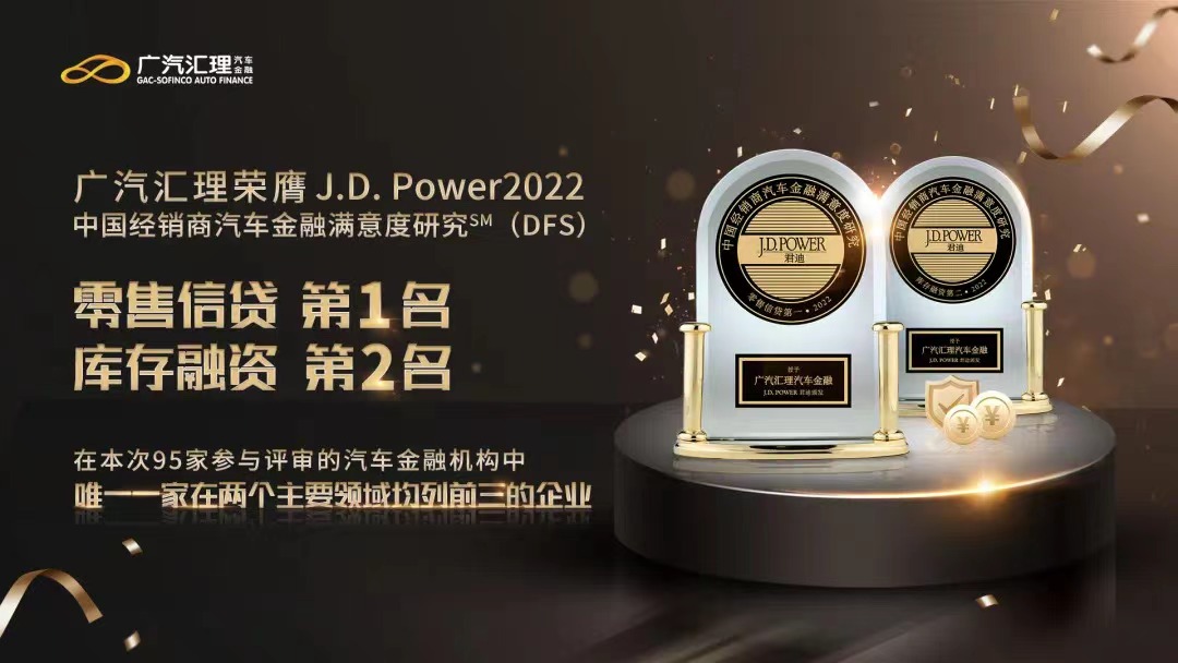 5月26日,全球顶尖消费者洞察和数据及分析机构J.D. Power,发布了2022中国经销商汽车金融满意度研究(DFS)成果,广汽汇理以零售信贷排名第一,库存融资排名第二的佳绩,在该评选中摘得“一金一银“,是参评的95家汽车金融机构中,唯一一家双指标均进入前三的公司。在这之前,广汽汇理自2019年到2021年,连续三年荣膺中国汽车「金引擎」奖之“最佳汽车金融公司”。