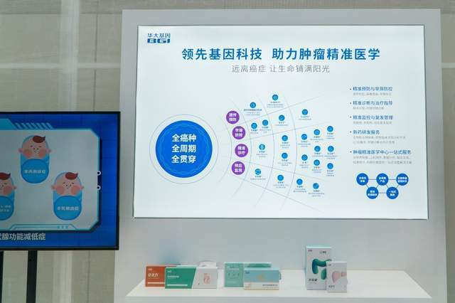 在肿瘤防控方面,华大基因重点展示“预防、筛查、诊断、监测”肿瘤基因检测闭环,展出了华大基因遗传性肿瘤基因检测、HPV分型基因检测试剂盒、华常康粪便DNA甲基化检测、华甘宁®无创肝癌基因检测等产品。