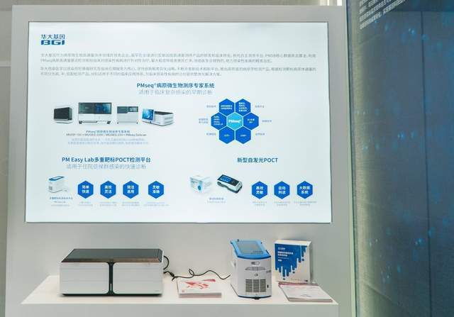 在传感染疾病防控产品中,华大基因重点展示PMseq Datician病原专家分析系统、PM Easy Lab多重靶标POCT检测平台和细菌耐药基因多重检测试剂盒。