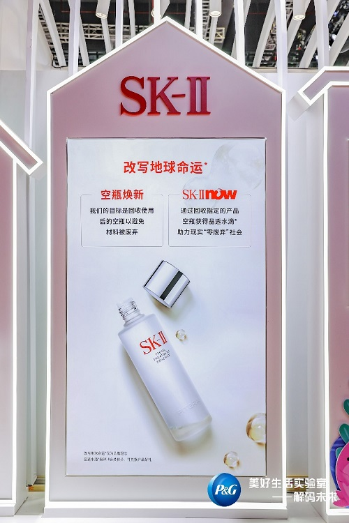 在塑料回收领域,刚才提过的“变废为美”的故事还在继续,设计师们把废弃的塑料回收再造,把他们变成了美丽的发艺首饰和皮影故事;除此以外,SK2发起神仙水空瓶焕新活动,通过回收指定产品的空瓶,消费者可以获得“晶透水滴”品牌会员积分,助力实现“零废弃”社会。品牌相信,艺术和美的力量可以影响更多人关注环保。
