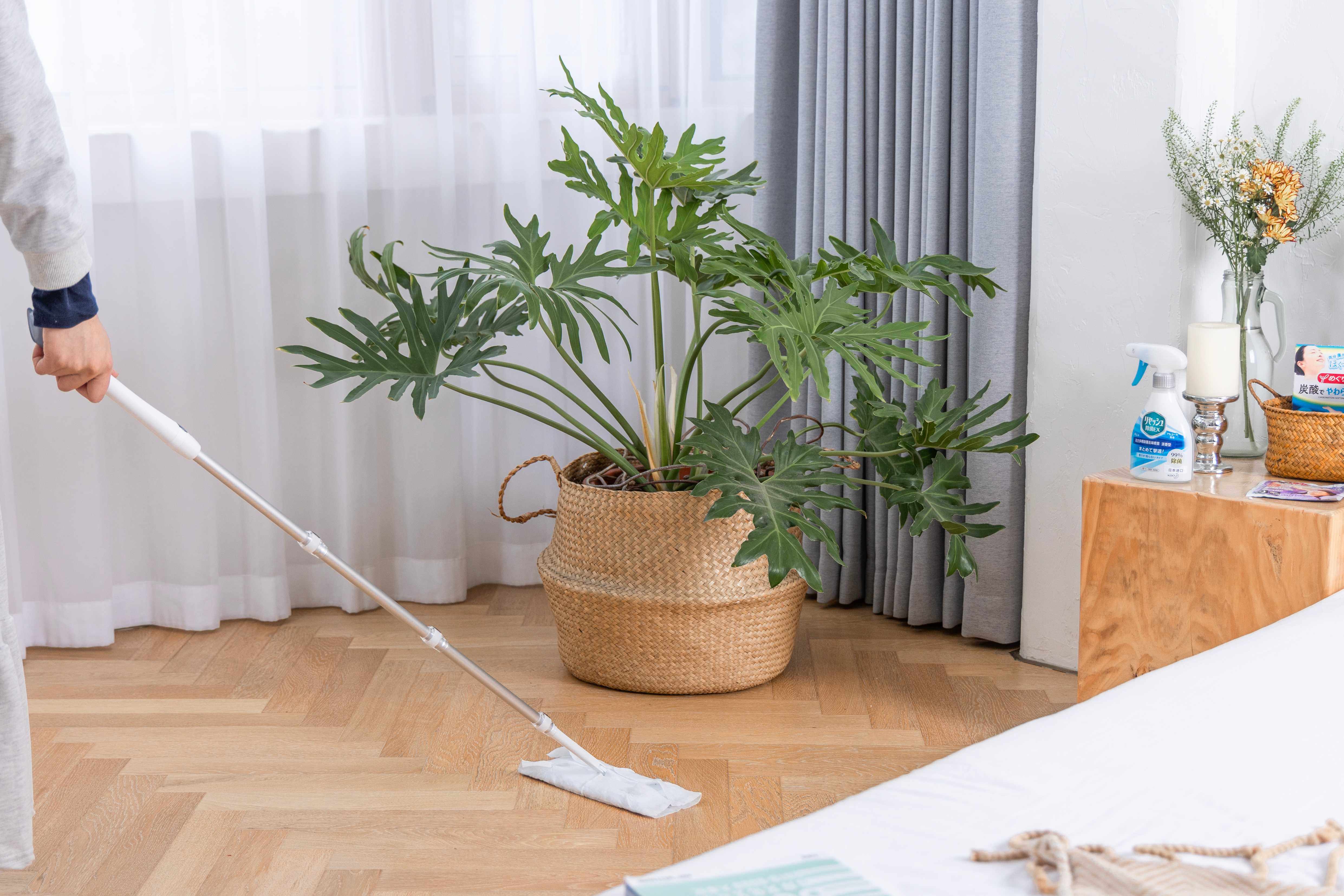 装修后房间的清扫及养护必不可少,但在小李家却看不到扫帚、拖把等地板清洁用具。小李说:“日常使用的拖把拖完地上会留有水渍,干的又担心无法彻底擦干净,而且拖把还比较占地……换用抹布擦地就耗时又累。“