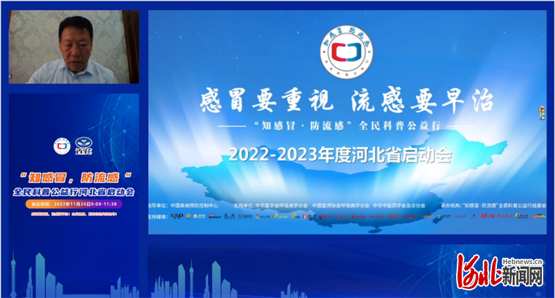 河北新闻网讯(张欣媛)感冒要重视,流感要早治。感冒和流感是最常见的呼吸道急性感染性疾病,每年都有季节性的流行,为有效防范流感对健康的侵害,增强基层医师治疗水平,更大范围传播感冒、流感及新发呼吸感染疾病的科普知识,提高公众认知,减少疾病伤害。11月26日上午,由河北医学会呼吸病学分会主办、以岭药业承办的2022-2023河北省“知感冒,防流感全民”科普公益行启动会以在线形式举办。