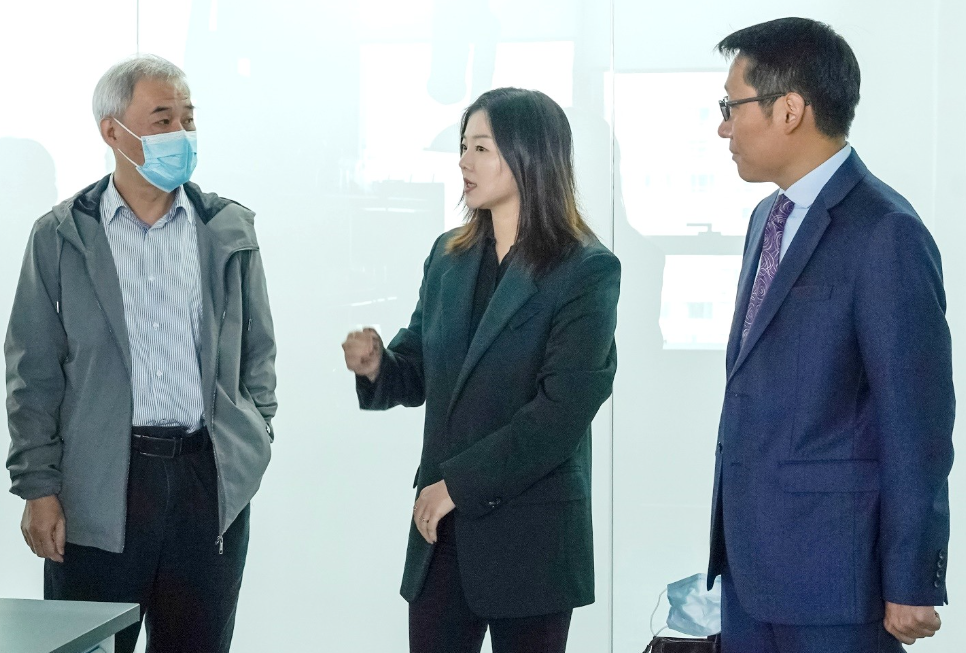 青岛黛优佳生物科技有限公司总经理尚丽丽与贾文生部长、张栋华院长亲切交流