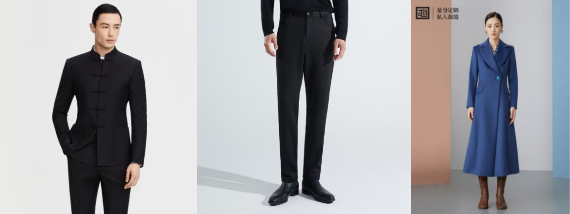 衣邦人五粒扣西服、码尚定制黑马全能休闲裤、隆庆祥女士手工定制款羊毛羊绒大衣