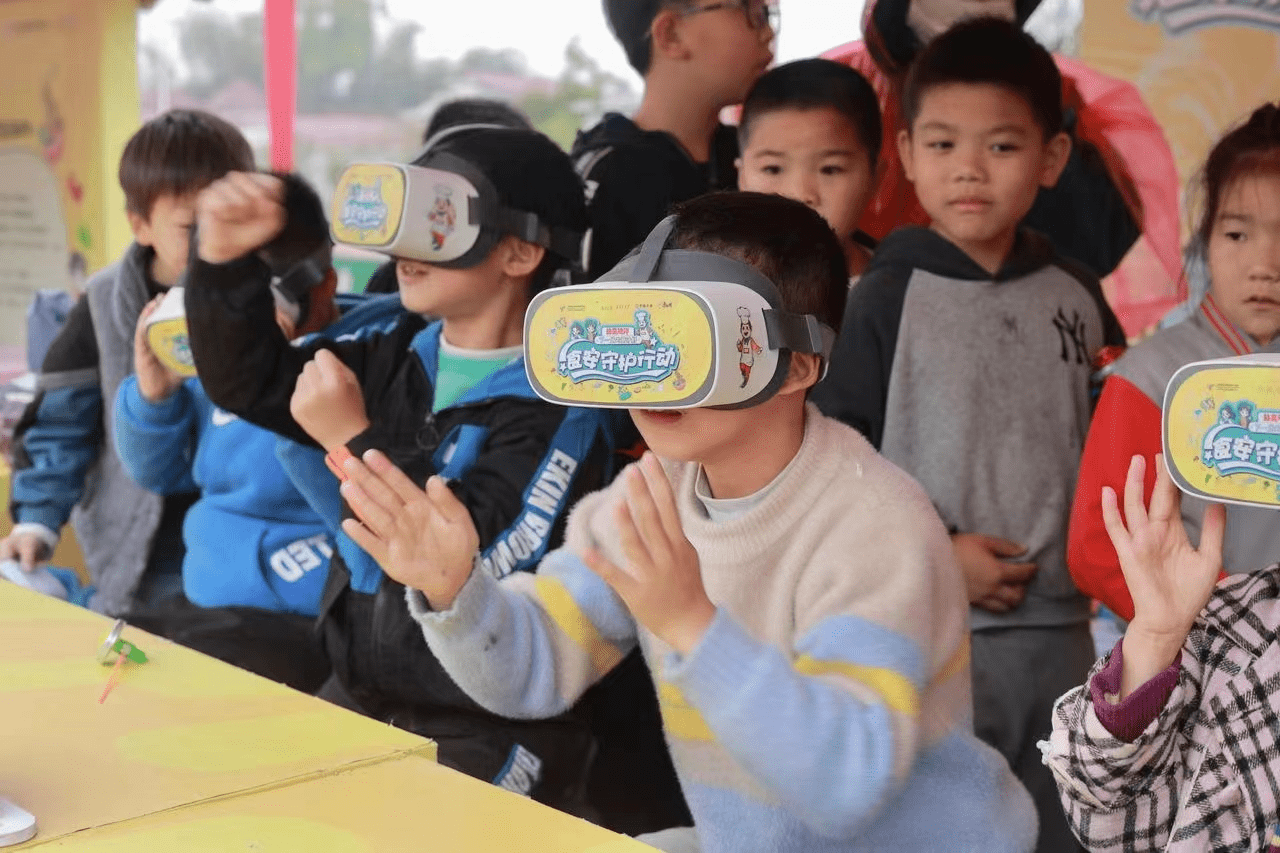 食安课程结束后,孩子们兴高采烈地投入到各项体验活动中。“你说我猜”、“找不同”、“食安大富翁”以及VR观影这些互动游戏的出现让校园中欢声笑语不断。“我们展示的是康师傅航天VR视频教材,FD食品冻干技术应用在太空食品当中,也用在了方便面蔬菜包当中,寓教于乐的方式能充分调动学生们的学习兴趣。”互动中,老师们使用展板、开展问答积极调动学生参与和学习,让孩子们把健康饮食、健康科普的知识牢记心间。