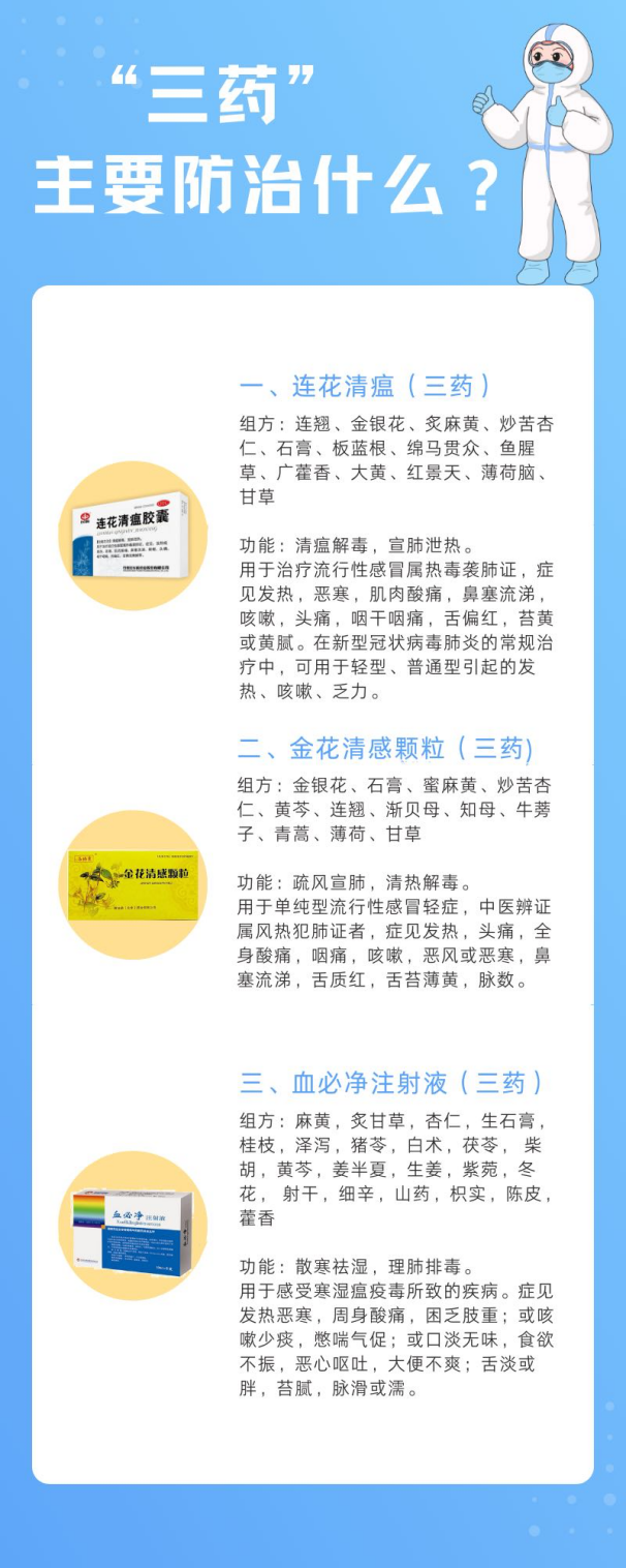 “三方”中的清肺排毒汤是源自于《伤寒论》的5个经典方剂融合组成的,是国家诊疗方案中推荐的通用方剂。化湿败毒方和宣肺败毒方是在武汉前线的临床救治过程中,根据临床观察总结出来的有效方剂,也已获批上市。准确地说,目前“三方三药”已成为了“六药”。