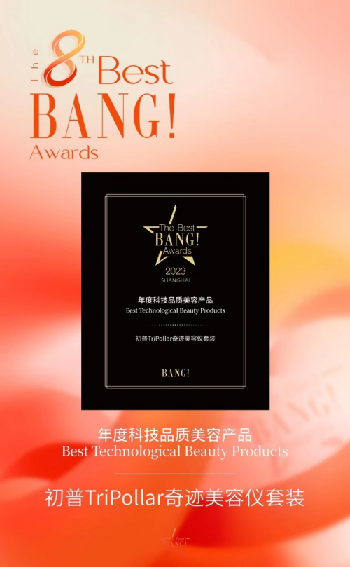 近日,第八届The Best BANG Awards 2023年度城市生活大赏榜单重磅揭晓。全球领先的家用射频美容仪品牌初普TriPollar凭借其最新抗衰力作「奇迹美容仪套装」在一众品牌中脱颖而出,荣膺“年度科技品质美容产品”大奖,并成为唯一上榜的家用美容仪品牌。