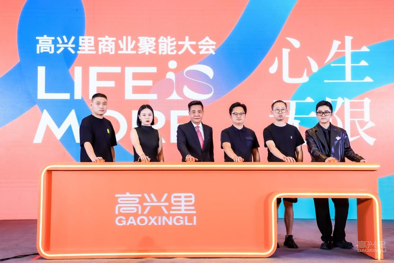 大会进入高光环节,中维地产总经理范志凌携手高兴里潮流主力场NOYARD中入驻的首店品牌代表THEYKNOW品牌创始人Oulan,TOYSWAP品牌主理人Roy,WAT品牌业务VP高翔,WHATEVER品牌创始人Eric, 一头也品牌创始人罗元禧共同上台参与启动仪式,象征着海口城市新地标高兴里正式启动。