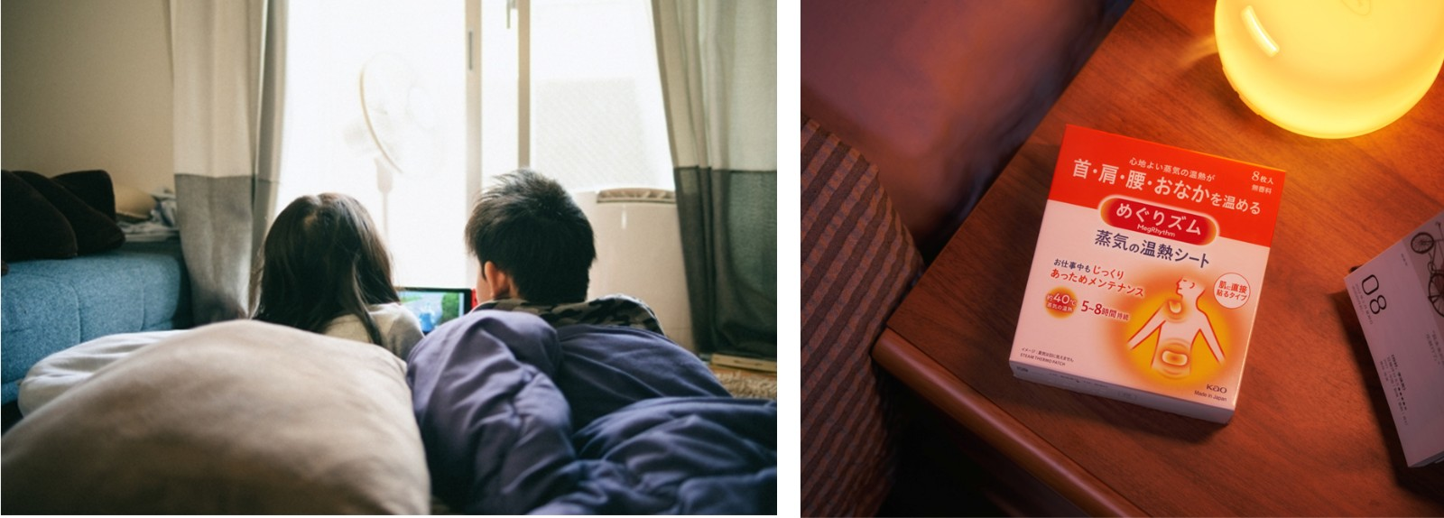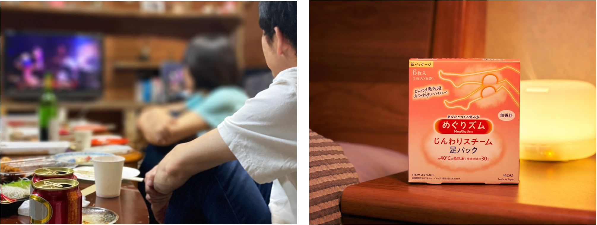 全神贯注地观看精彩球赛的同时,难免会忘记活动一下腿脚。经历了白天办公室的久坐之后,到了晚上,腿部容易酸胀或腿脚冰凉。使用花王美舒律蒸汽休足贴,往小腿上一贴,蓬松绵柔的触感配合暖润蒸汽,让腿足的血液循环得到改善,驱散深夜的寒气、保持足部的温热感,让深夜看球的你感受温暖的腿足呵护。
