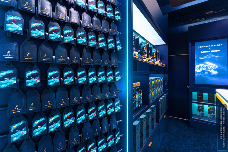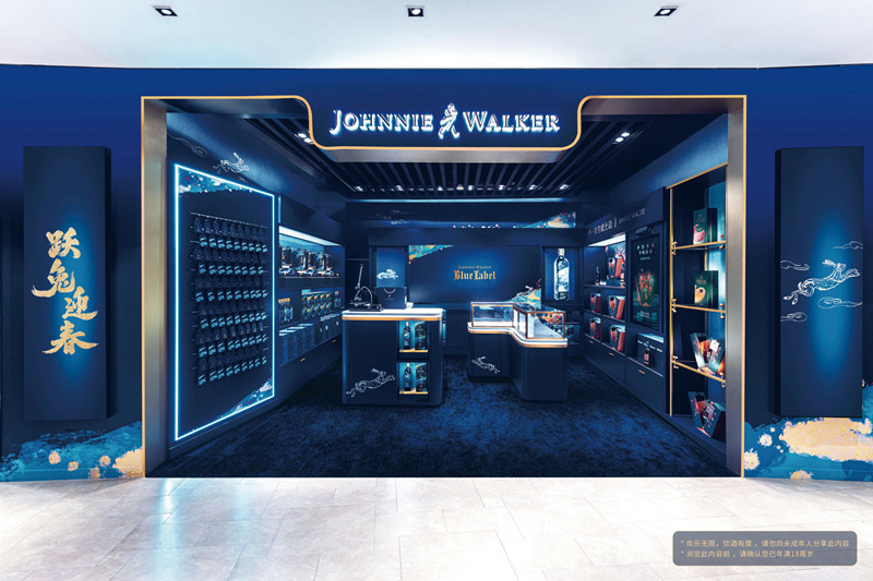 在三亚、海口等地的免税渠道中,尊尼获加威士忌精品店也以全新兔年设计焕然一新,以瑞兔奔腾向前的跃动之姿,带来关于2023年的纷繁想象。坐落于三亚cdf国际免税城的尊尼获加威士忌精品店,就成为了消费者在新年购物时的“打卡点”。富有深度的深蓝色调与“跃兔迎春”设计的交织,让店铺充满设计美学。
