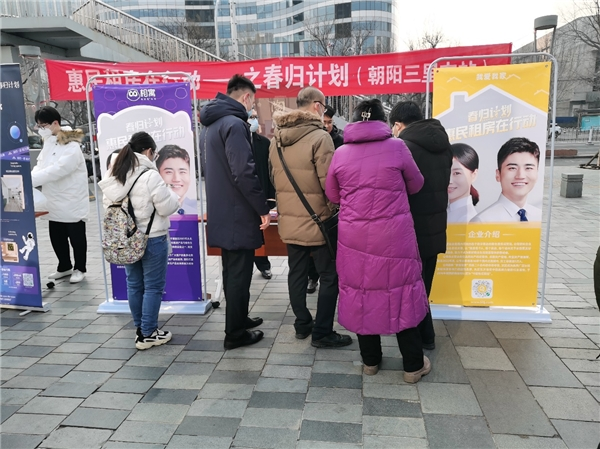 随着社会秩序恢复,春节后回京就业人员增加,大量新市民、青年人和城市运行服务保障人员需要通过租房解决居住问题。为此,北京房地产中介行业协会开展“惠民租房在行动——春归计划”专项服务,并号召广大房地产经纪企业积极参与。我爱我家高度重视、积极参与并作出五大承诺的全市700多家门店、1万多名经纪人积极行动,派出精兵强将前往朝阳、海淀、通州、丰台、大兴、昌平等地区搭建展台,参与“春归计划”宣传活动。基于各区不同侧重点,各个门店筹备房源提升服务,加强企业合作,目前公司单日接待房屋租赁咨询量已超13000人次。