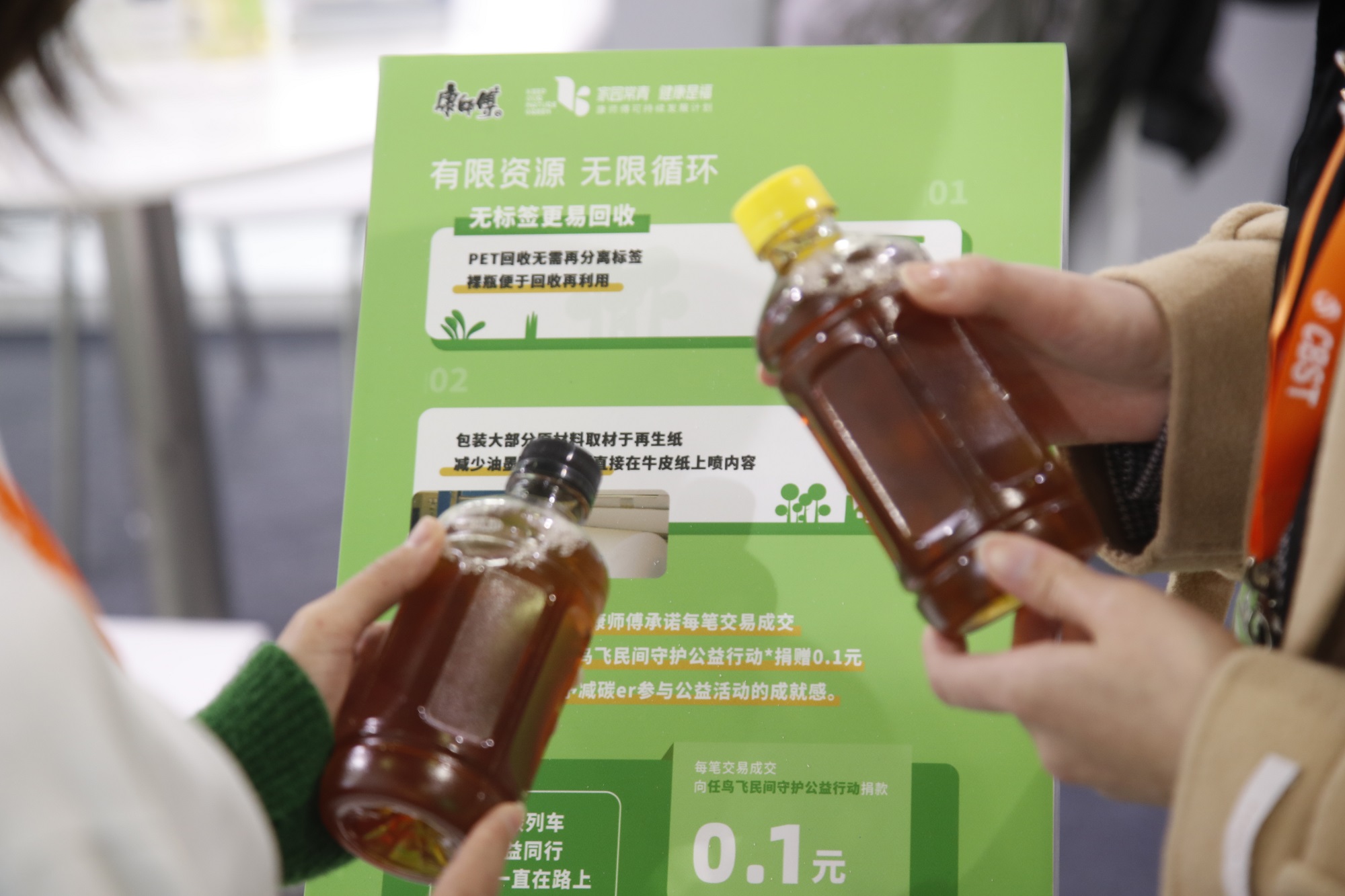 在可持续产品方面,康师傅展出了其在去年10月推出的主打“0糖0脂0能量”的“纯萃零糖原味茶饮料”,这是国内首款真正实现碳中和的茶类饮品,并具有广东省节能减排标准化促进会颁布的碳中和证书。
