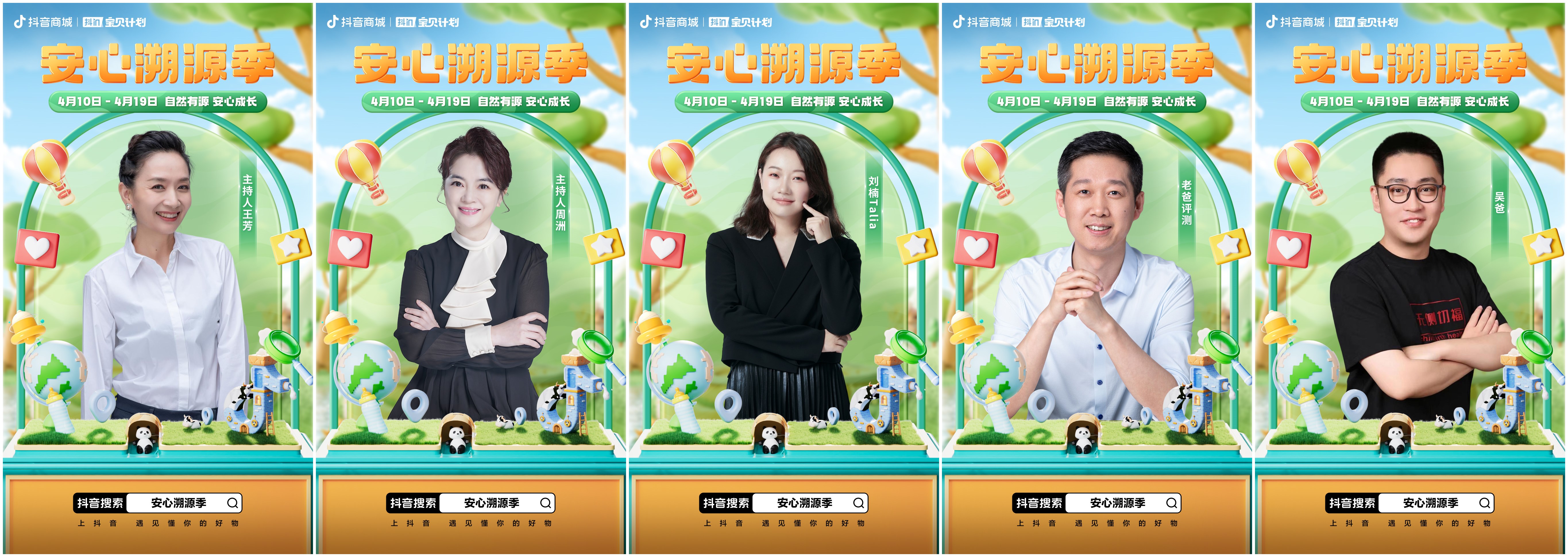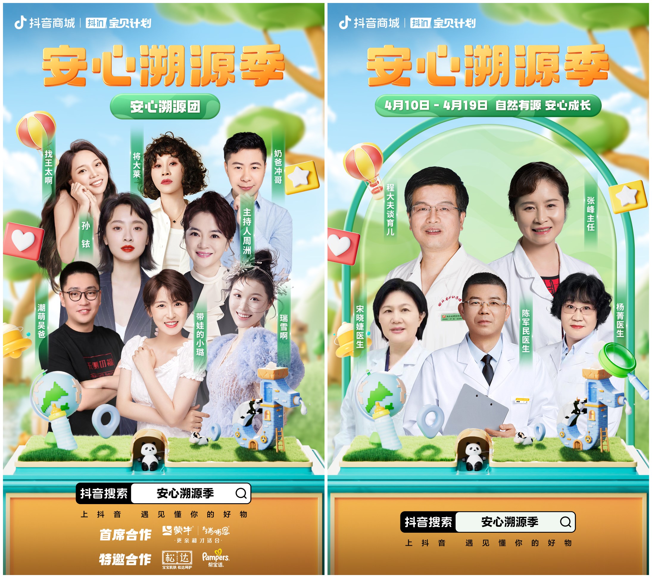 4月10日 - 4月19日期间,抖in宝贝计划・安心溯源季以国货循迹:自然有源 安心成长 为主题,携手首席合作品牌蒙牛瑞哺恩,特邀合作品牌帮宝适、松达,以及佳贝艾特、英氏忆格、bebetour、戴可思、蓓康僖、卡布、英氏洗护、小鹿蓝蓝、飞鹤奶粉、袋鼠妈妈、亲抚、超爱、新贝等16余家母婴品牌,联合老爸评测、刘楠Talia、主持人王芳、主持人周洲、潮萌吴爸等亲子头部达人开启安心品质溯源之旅,推广育儿亲子知识,安利安心品质好物。同时还将推出安心溯源季线下森友会亲子互动玩法,让孩子们体验自然,感受健康亲子生活。