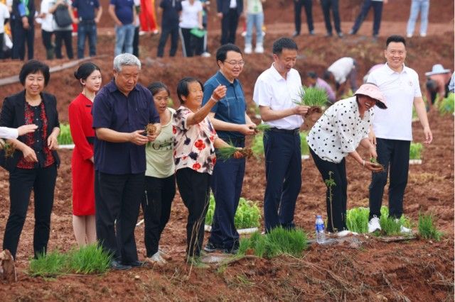 恰逢谷雨时节,宜宾的气温略显闷热,但位于翠屏区白花镇的五粮液专用粮基地格外热闹,有种庄稼的行家里手、有研究农业的院士专家、有挥舞龙狮的村民小伙、有看热闹的老人小孩。上午9时30分,“种道地好粮 酝传世佳酿”2023五粮液种粮大典隆重举行。