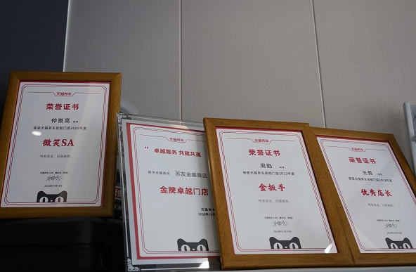 2022年,天猫养车苏友金盛路店被评为“金牌卓越门店”
