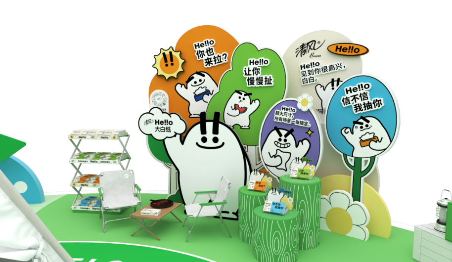 在打卡点,用户不仅能够一站式了解到清风品牌的各大品类产品,体验到现场客服的专属服务,同时在品牌文化区,还能深入感知清风“以林养纸,以纸促林,林纸结合”的可持续发展理念与态度,让年轻用户深入感受到绿色低碳生活方式的优越性,在感受自在露营野趣的同时,进一步激发消费者保护自然、绿色生活的环保意识。