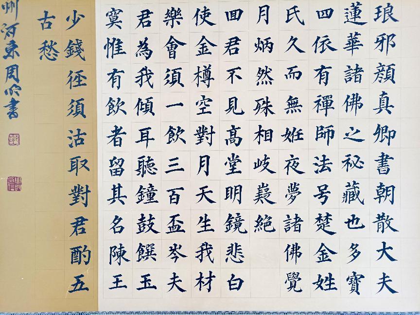 周明,山西太原人,原藉永济,中国人民大学书法硕士研究生。现任山西国际文化交流协会理事,山西省城乡文艺交流协会副会长,山西省农民书画艺术协会副会长,三晋文化研究书画院副院长,王羲之书画院副院长,人民日报神州书画院特聘书画师,国宾礼艺术家,形象大使,山西省书协会员。在四十余年的砚海耕耘中,以传统经典为师,勤临苦练,笔耕不辍,形成了清秀隽永,遒劲潇洒的个人风格。尤其在大,中,小楷上的造诣,更是得到了欧阳中石,段成桂以及金运昌等专家学者的高度评价。2009年获中国永乐宫第二届国际书画艺术节百佳奖,以及文化部文华奖。2002年,2015年,2017年,2019年,2021年先后在省会太原,山西朔州市,阳泉市,永济市,运城市等地成功举办个人书法展。其作品不仅得到了社会的好评,同时更被国内外众多机构永久收藏。