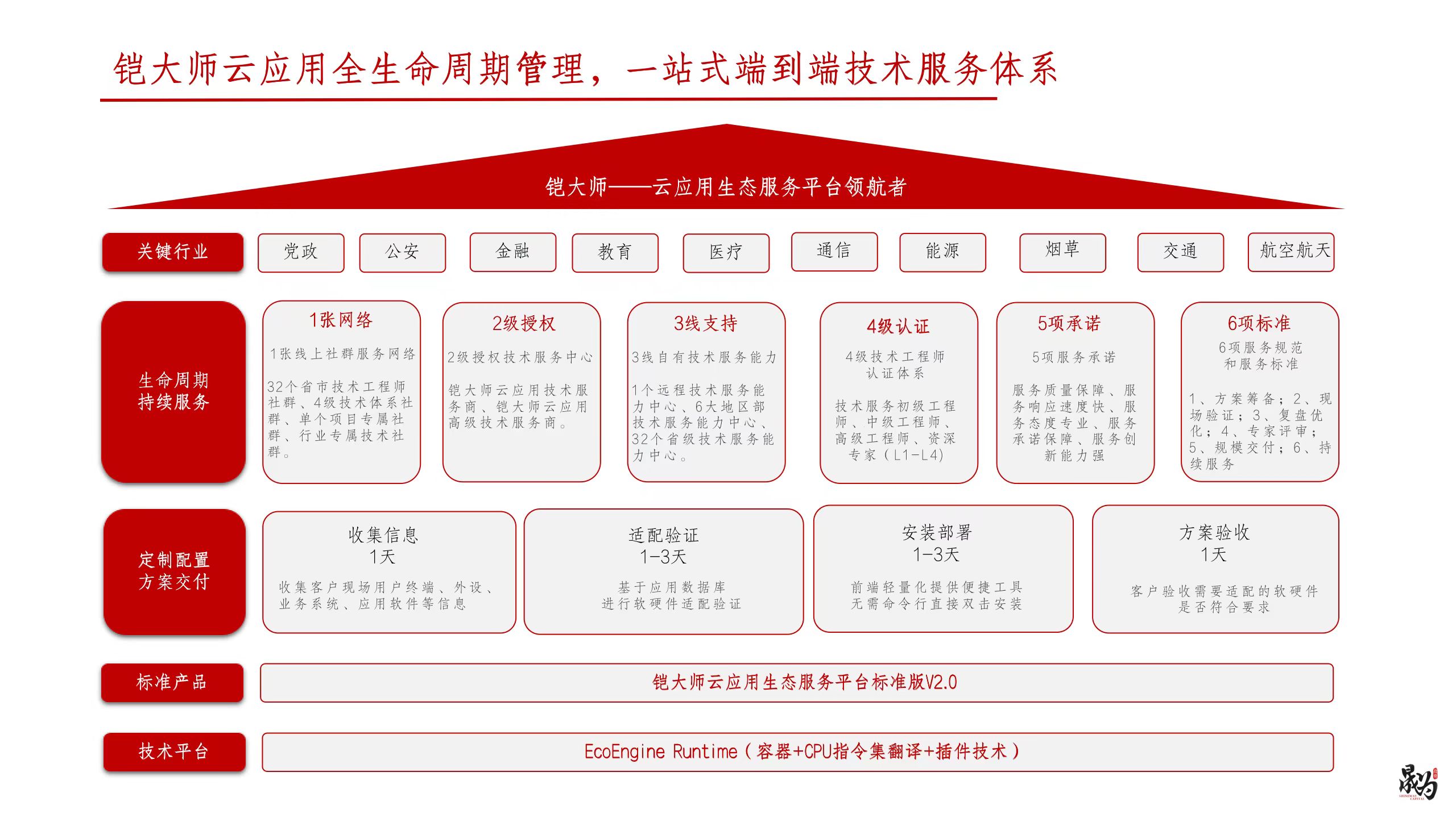 再比如,为跨越应用生态与传统的windows生态存在的巨大链接鸿沟,华为在对铠大师云应用生态服务平台进行严格生态测试后展开广泛合作,从而更好地服务客户。据悉,该云应用生态服务平台,可提供端到端的应用生态服务,真正补齐信创生态短板,实现全面兼容,同时解决应用迁移慢、应用开发适配成本高、后期升级维护成本高等问题,大幅提升用户体验,铠大师用核心技术助力信创产业跨域生态鸿沟。