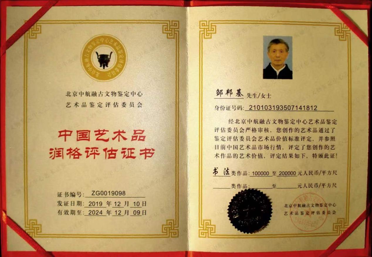 邹邦基,1935年7月生,国家一级美术师(书法),国家级诗书画家,中国杰出书画家协会名誉会长,中国诗书画联盟网名誉主席,法兰西皇家美术学院博士,瑞典皇家艺术学院外籍院士,意太利罗马画院终身院士,比利时皇家艺术学院终身院士及荣誉教授,世界艺术学会荣誉主席兼艺术顾问,世界文艺家企业家交流中心名誉主席等。作品入编《中国权威收藏书籍·中国艺术品软黄金》、《世界艺术瑰宝》、《世界殿堂级艺术大师》、《传世经典·大师风范》、《世界艺术·全球著名书法家》、《世界艺术·全球著名诗词家》等百多种书籍及国瓷、国玉等国礼艺术品,荣获“国际文艺特别贡献奖”金奖、“全球艺术投资巅峰奖”、“国际艺术金狮奖”、“环球华人艺术金奖”、“达芬奇国际艺术金奖”、“联合国和平艺术奖”、“世界之巅·非物质文化珠峰奖”等九十多项奖励以及“国宝级艺术家”、“共和国功勋艺术家”、“国家六大艺术泰斗”、“世界殿堂级艺术大师”、“世界和平文化功勋人物”、“影响世界十大金牌艺术家”、“国际德艺双馨艺术家”、“全球最具投资价值与收藏潜力艺术家”等八十多种荣誉称号。