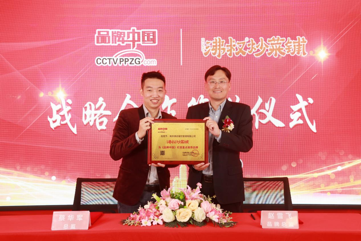 近日,沸叔炒菜铺与《品牌中国》栏目签约仪式顺利举行。在签约仪式上,《品牌中国》代表授予沸叔炒菜铺“《品牌中国》节目重点推荐品牌”荣誉称号,双方正式成为战略合作伙伴。今后,双方将充分发挥自身优势,推动沸叔炒菜铺向行业更高层次、更深领域迈进。