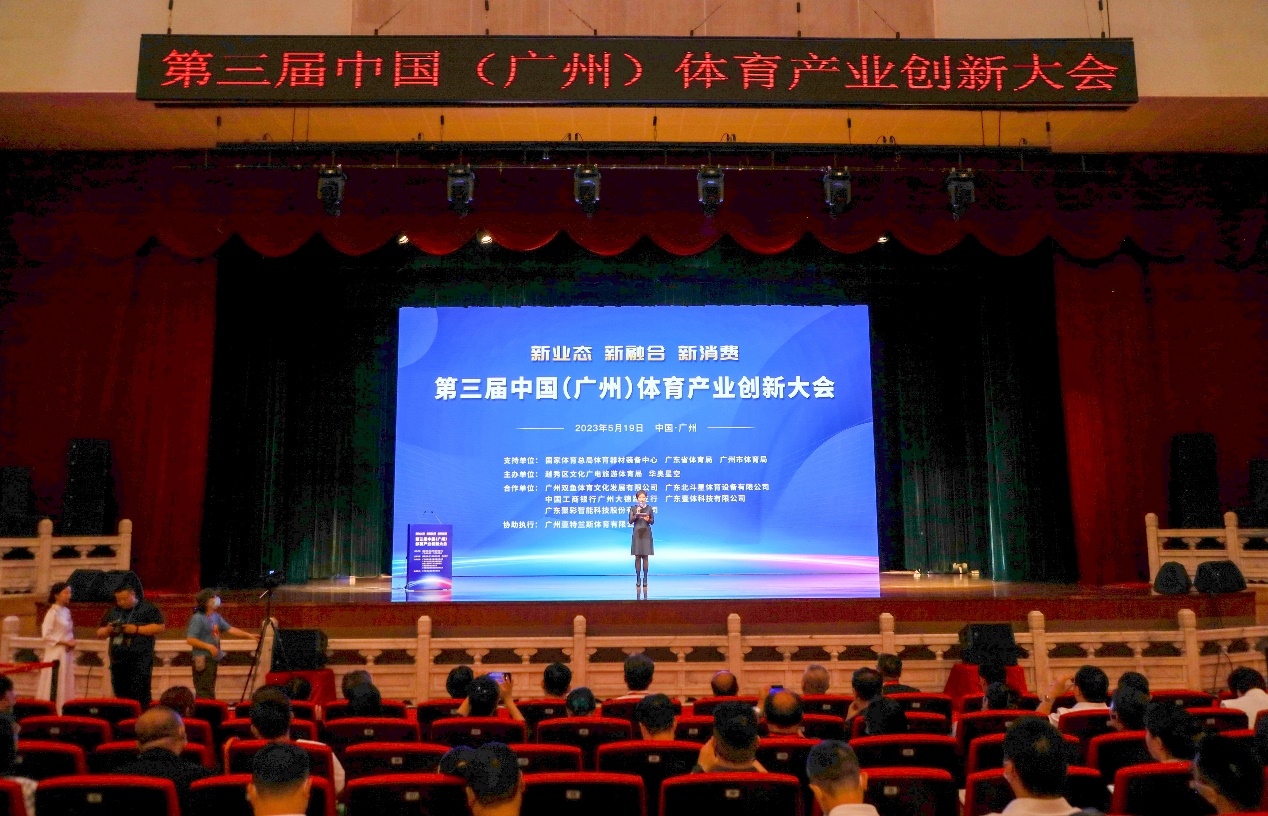 5月19日,第三届中国(广州)体育产业创新大会在广州市越秀区中山纪念堂举办。大会由国家体育总局体育装备器材中心、广东省体育局、广州市体育局共同支持,越秀区文化广电旅游体育局、华奥星空主办,广州双鱼体育文化发展有限公司、广东北斗星体育设备有限公司、中国工商银行股份有限公司广州大德路支行、广东壹体科技有限公司、广东聚彩智能科技股份有限公司合作举办。中华全国体育基金会副理事长、秘书长,国家体育总局体育经济司原副司长、一级巡视员彭维勇,国家体育总局体育器材装备中心副主任王平,广东省体育局二级巡视员许国勋,广州市体育局副局长李春刚,广州越秀区副区长王咏赋等出席并讲话致辞。国家体育总局体育科学研究所研究员、北京体育大学教授鲍明晓,中国体育场馆协会运营管理研究中心主任兼首席研究员、华南师范大学教授谭建湘,国家体育总局青少司高级别专家张耀辉等专家、学者,华为技术有限公司、安踏体育用品集团有限公司、悦跑圈等知名企业代表,以及来自上海、安徽、山东、辽宁、湖北、云南、青海等全国体育产业示范基地代表,各地相关部门负责人,新华社、中国体育报、广州日报等中央及地方主流媒体等近千人与会进行分享沟通、考察、交流,并吸引了大量业内人士关注。