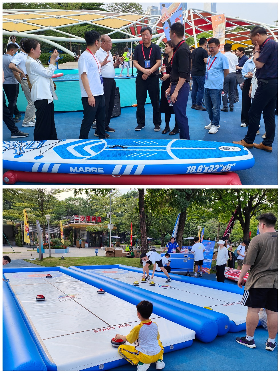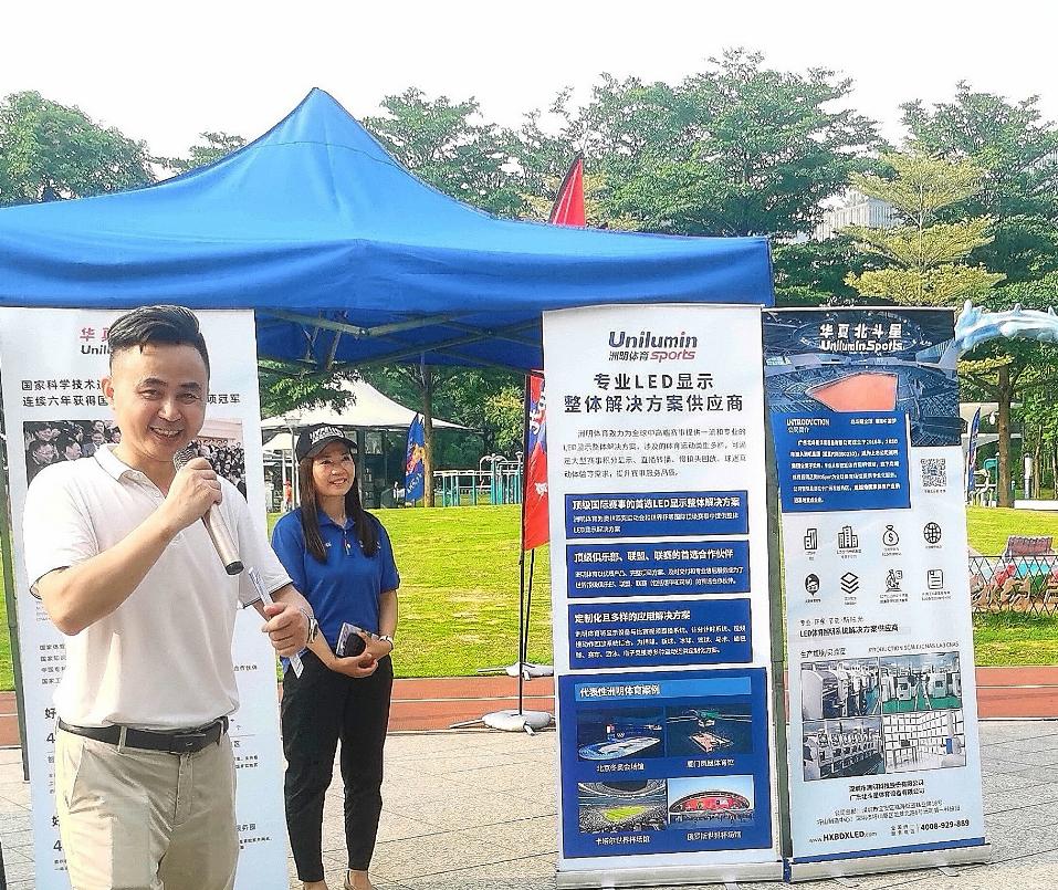 大会期间,还举办了创新成果展示、体育产业调研、地方文体资源考察及体育产业交流沙龙等一系列活动。广东北斗星体育设备有限公司、广东壹体科技有限公司、广东聚彩智能科技股份有限公司、黄山揽胜天下户外用品有限公司、广东佳佑体育发展有限公司、广州源动智慧体育科技有限公司等优秀企业纷纷进行了企业及产品的展示。其中,由华奥星空科技发展有限公司与千方优体(北京)科技集团有限公司共同主办的亲子运动会亮相二沙岛体育公园。