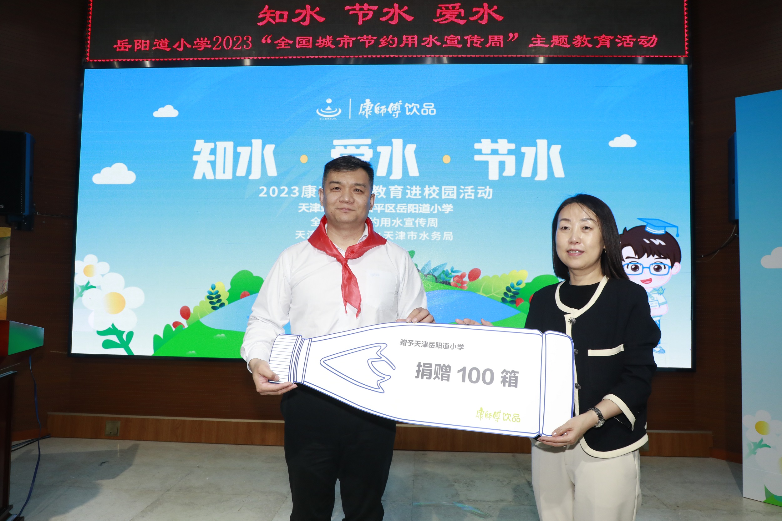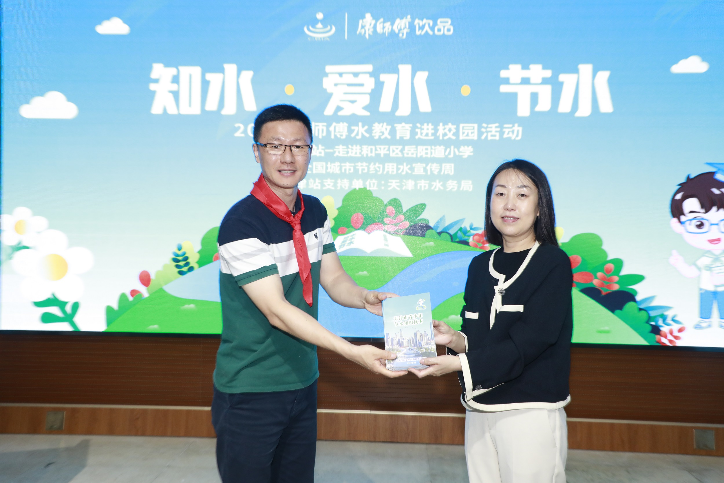 活动现场,康师傅向岳阳道小学捐赠了“安心”“健康”的康师傅饮用水,水务局向岳阳道小学捐赠了节水科普读物,以感谢学校对水教育活动顺利开展提供的大力支持。