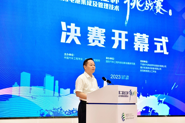 5月28日上午,第二届“长江杯”动力电池集成及管理技术挑战赛决赛在万里长江第一城宜宾拉开帷幕。宜宾市委常委、统战部部长陶学周,中国汽车工程学会副秘书长张旭明,秘书长助理赵立金,宜宾市科技局局长赵兵兵,宜宾国际会展集团、宜宾文广传媒集团党委书记、董事长曹杨,四川时代总经理特别助理、外联部部长杨伟平等主承办单位领导及评审专家团队出席开幕式活动;挑战赛评审专家委员会主任中国科学院院士、清华大学欧阳明高教授为开幕式视频致辞。开幕式由赵立金秘书长助理主持。