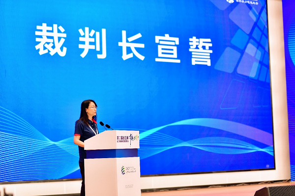 中国汽车技术研究中心有限公司首席科学家王芳担任本次挑战赛裁判长,发布决赛评审规则并代表裁判团队宣誓。北京航空航天大学交通科学与工程学院李强伟同学作为参赛团队代表宣誓,表示将服从比赛安排,严格遵守挑战赛竞赛规则,公平竞赛,维护挑战赛的权威。