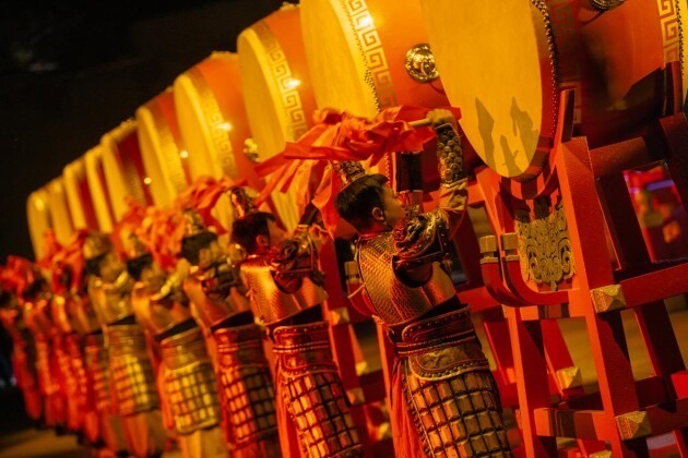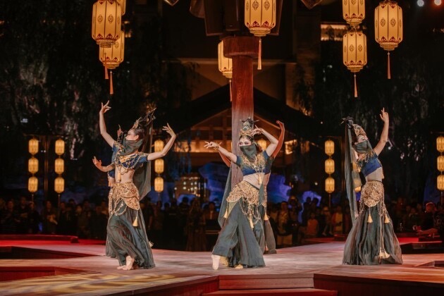 在这268分钟的夜游里,当你步入这座狂野之城,迎接你的是日落时的羯鼓鼓声与悠远羌笛,迷醉你的是喧嚣热闹的西域幻术和胡旋舞,包裹你的是千年前大唐的一场盛大会盟,热血你的是星空下的贺兰狂欢。更别说,闯入那条历史里的典农古街,烟火食肆的热闹与塞北江湖的豪迈在你眼前瞬间复现。你可能刚刚目睹一场边城剑客飞跃天桥的决斗,忽而又被带到一场古老的黄河民俗婚礼现场,刚刚聆听到宁夏艺人的沧桑老腔讲述着古老的故事,忽而又遇见如梦如幻的西夏丽影......