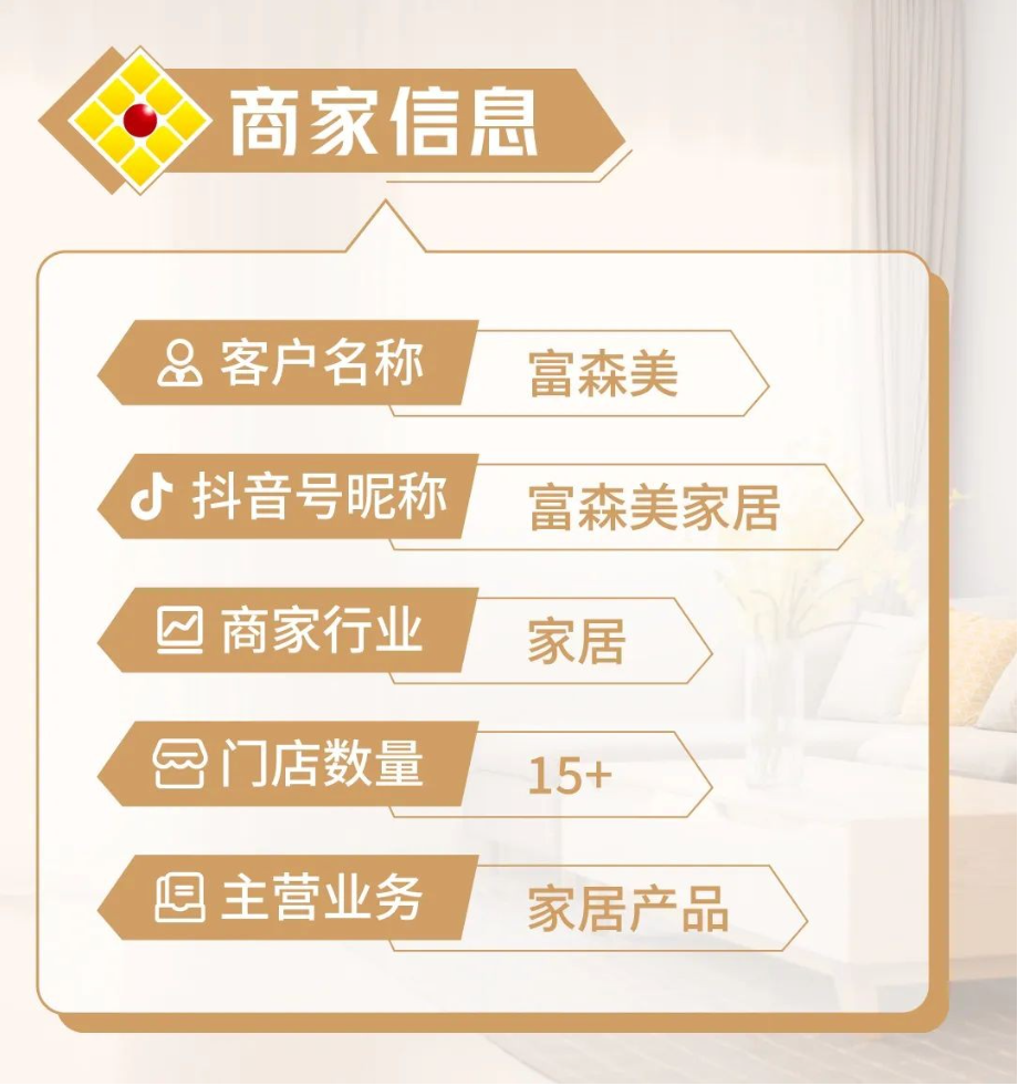 扎根成都,拥有15+门店的知名家居卖场【富森美】便是成功的探索者,在短短一个月内就取得了团购订单2500+,支付ROI 2.7+,核销率37%,自然流量订单占比85%的佳绩。那么,它如何优化直播间提升用户吸引力?如何通过好内容+好商品+好服务实现有效经营?如何借助巨量本地推,达成高质量的成交转化?本次巨量本地推就给大家看看富森美成交爆单背后的关键策略。