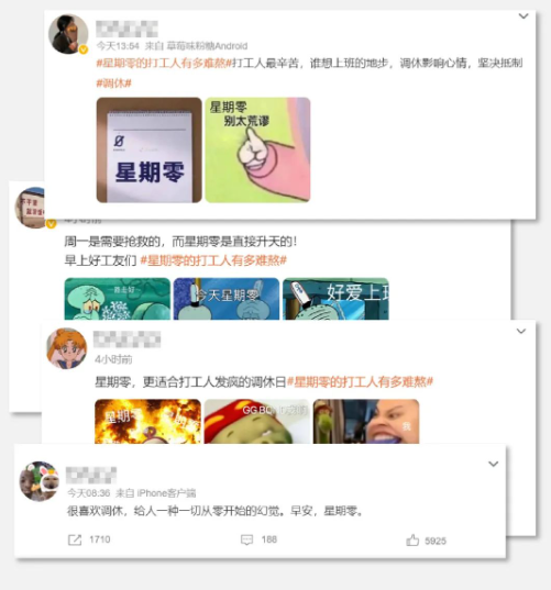 (网友在星期零相关话题下吐槽的微博)