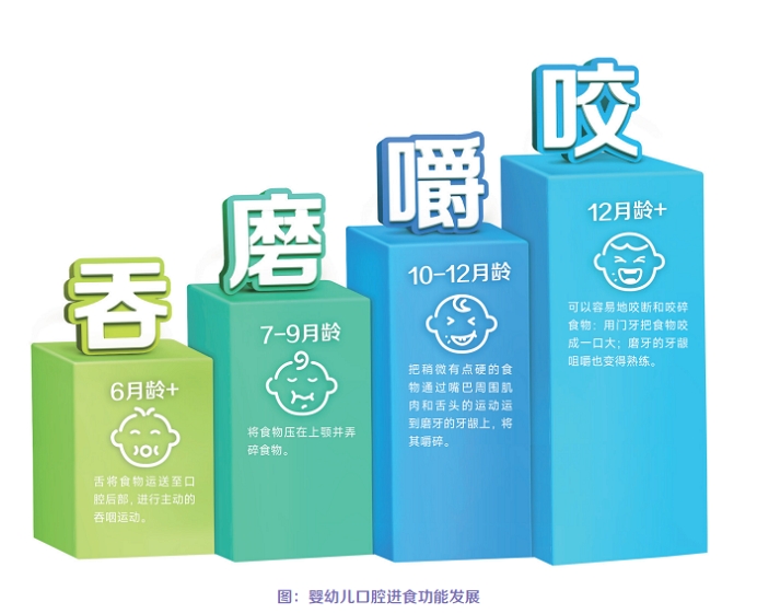 发布会上,中国疾病预防控制中心妇幼保健中心原儿童保健部主任王惠珊提到,婴幼儿的口腔及其功能的发育是他们成长过程中学习进食的重要基础,也是婴幼儿发现自我、探索和连接这个世界的重要工具。婴儿来到这个世界后的第一声啼哭始于口腔,摄入获取生长能量的第一口食物、感知妈妈的身体也是通过婴儿小小的口腔来获得。同时,不同月龄婴幼儿口腔的生理结构及功能的发育决定着婴儿在相应时期摄入食物的质地、形状和种类,进一步也间接影响着婴儿对于营养素的摄入。在口腔功能发展的不断进阶中,口腔的感知觉能力、唾液的组成,尤其是整体对外界的适应能力不断增强,婴幼儿逐步完成了从哺乳、辅食添加到最终实现家庭食物喂养之旅的探索。本次“探索式进阶—吞、磨、嚼、咬”的理念,科学明确地揭示出婴幼儿的口腔运动功能发育和食物探索是相互促进的,这一时期不仅是婴幼儿探索食物、摄取营养的重要阶段,也是其自身能力和社会性行为探索的重要机会。父母要了解并关注婴幼儿口腔发育情况,结合不同阶段的发育特点给予不同的喂养方式,帮助婴幼儿健康成长。