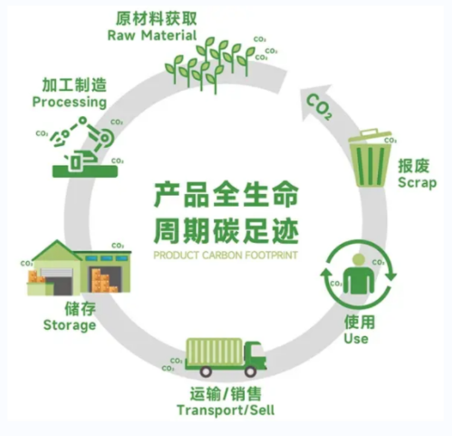 产品碳足迹(Product Carbon Footprint, PCF)是指衡量某个产品在其生命周期各阶段的温室气体排放量总和,即从原材料开釆、产品生产(或服务提供)、分销、使用到最终处置/再生利用等多个阶段的各种温室气体排放的累加。