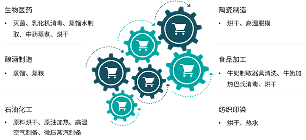 该方案广泛应用于生物制药、陶瓷制造、酿酒制造、食品加工、石油化工、纺织印染等行业。