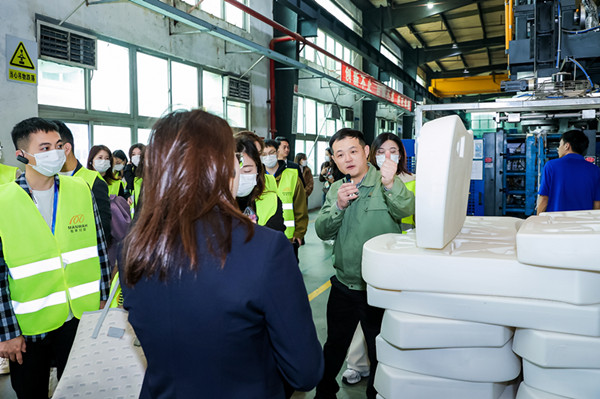 在吹塑件生产区,讲解员向媒体团介绍了吹塑框架工艺标准,即采用进口健康环保HDPE汽车座椅级加强骨架,相对于传统的木材来说更加结实耐用、健康环保;现场有媒体表示:芝华仕头等舱的吹塑框架是一种革命性的升级。