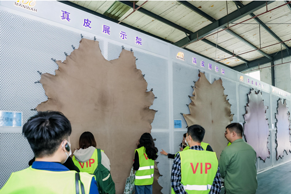 根据沙特文及欧睿国际的数据调研显示,敏华控股拥有全球最大的牛皮存储仓库,约将近有15万张。据讲解员介绍,测试人员在进行面皮检测时,首先需要通过四色灯检,再进行包装检查、外观检查、规格尺寸、材质检验、特性指标检验等检验流程,以此保证应用在芝华仕头等舱沙发上的是无异味、0甲醛、无重金属残留的品质牛皮。