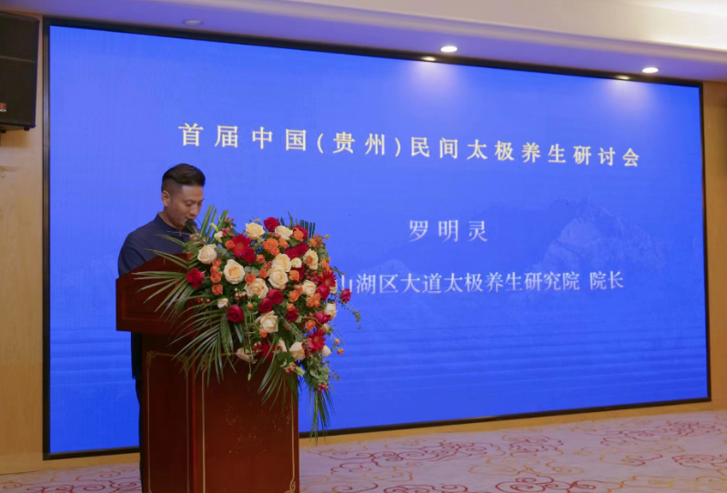 筹备主办本次研讨会近一个月的贵阳市观山湖区大道太极养生研究院罗明灵院长激动的说:“大道太极养生研究院成立三年来,一直致力于本地区全民太极养生发展和传播;弘扬中华优秀太极养生文化,积极组织研究、挖掘、整理太极养生技术和理论。今天见到出席研讨会有众多前辈、各地区武术、太极协会会长、秘书长及各行业专家、老师们感到非常高兴。组织本次公益性研讨会,是为了让更多从事太极养生事业的人士积极传播“太极养生+”多元化体系研讨成果,使习武人、养生者更好地了解其原理和方法,提升武技和文化素养,增强养生价值、重视健康和生活质量的认知;为更多太极养生爱好者带来健康快乐和幸福感。为宣传“康养到贵州”品牌推广和传播做出贡献,积极响应推进《健康中国2023规划纲要》提出的”共建共享、全民健康”建设健康中国战略主题。”