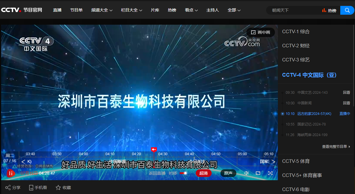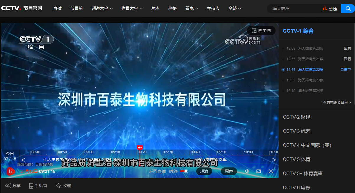 央视播出截屏