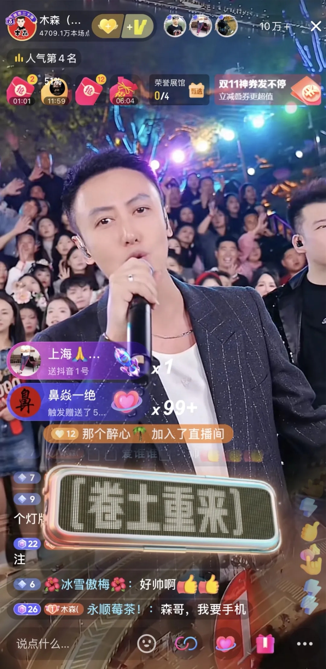 还有一种创作者,将线下的大舞台模式直接“搬迁”到线上,给消费者的购物过程增加歌舞表演。典型代表就是创作者木森。在木森的直播间,用户能看到各路典型的秀场表演,包括唱歌、舞蹈甚至杂技等等。木森将带货直播穿插到表演当中,让消费者在看高兴了之后顺手下一单,每场直播都能卖出10万单以上的商品。
