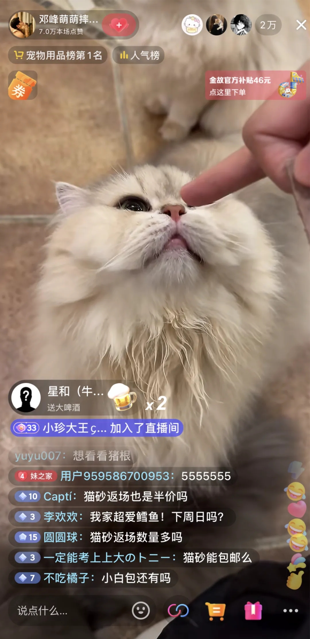 宠物内容赛道中的主角永远是宠物,而不是人。这就是场景化直播内容的价值,不必做声嘶力竭的叫卖,把养猫成果直观展现在用户面前,猫咪就是最好的主播。今年双11,@邓峰萌萌摔肿了在特色且有效的直播策略下取得了很好的转化。