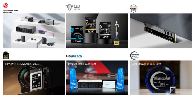 雷克沙品牌、产品和设计屡获国际权威媒体和机构的高度认可,多次被美国头部媒体 Videomaker、世界影像技术新闻协会TIPA、摄影之友杂志、蜂鸟网评选为最佳存储产品、最佳存储卡、年度存储卡,荣获了包括美国媒体NikkTech 的金牌奖、CDRLab 的最佳购买奖、Mashable 的最佳技术奖,以及全球顶级设计大奖 MUSE 设计奖金奖等众多荣誉。2024 年上半年,雷克沙 7 款新品再次荣获红点大奖。同时,在TrendForce 2023 年全球 SSD 模组厂自有品牌通路出货榜单中排名全球第三。持续多次赢得国内外重大奖项,进一步扩大了雷克沙在国内、北美、欧洲、亚太等全球市场的品牌影响力。