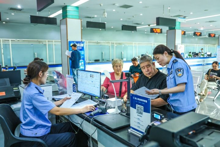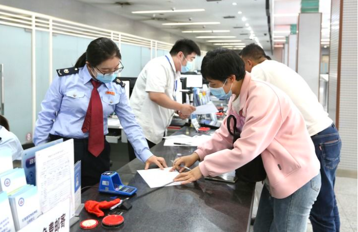河南省焦作市政务服务中心公安综合服务窗口工作人员在为群众办理业务。林晓 摄