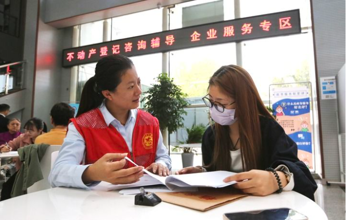 河南省焦作市政务服务中心不动产登记咨询辅导专区,工作人员在为群众提供业务辅导。王梦梦 摄