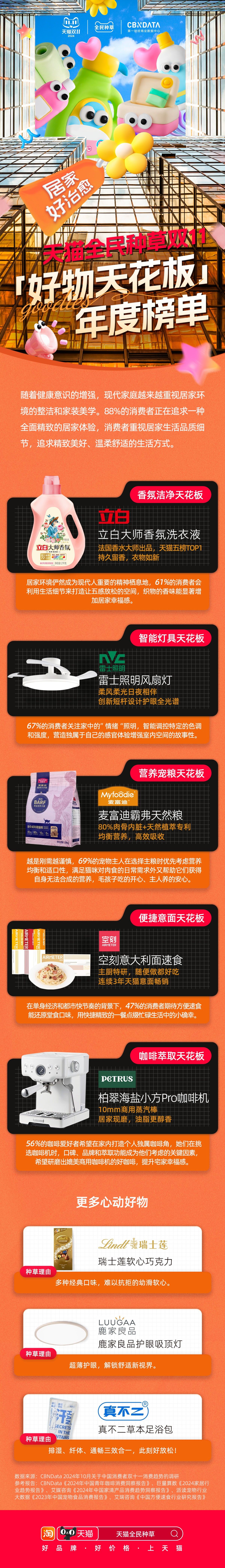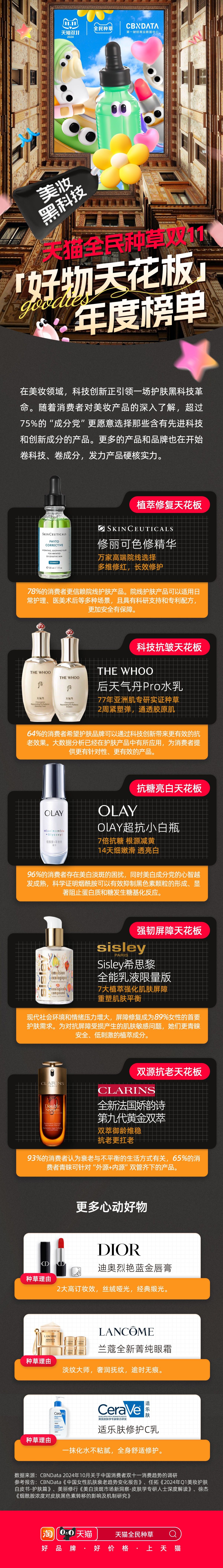 值此节点,天猫全民种草联动第一财经商业数据中心(CBNData),重磅发布《双11「好物天花板」年度榜单》。围绕美妆护肤、运动健康、3C家电、家居家清、服饰穿搭、母婴育儿相关六大行业,臻选出“美妆黑科技”、“健康滋养派”、“居家好治愈”、“智造未来家”、“实穿也时髦”、“精细化育儿”六大榜单,共计48个单项产品荣誉上榜。