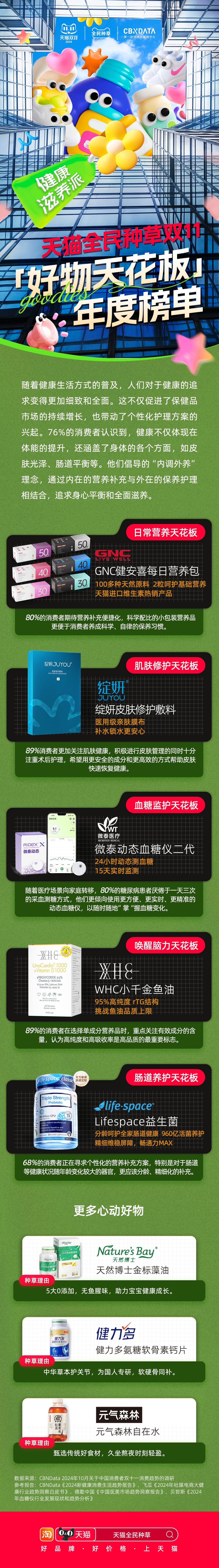 在身体健康方面,人们开始寻求更细致且全面的养护。有76%的消费者意识到,健康已经不仅仅是体能,而是涵盖皮肤光泽、肠道平衡等体系化的全面滋养。明显展现出这种趋势的是GNC健安喜每日营养包的入选,凭借技术创新和科学专利配方,相关产品在过去一年中销量不俗,成为健康类目下的「日常营养天花板」。这也展现了消费者注重投入比,追求高效便捷的“轻态化”健康生活模式。