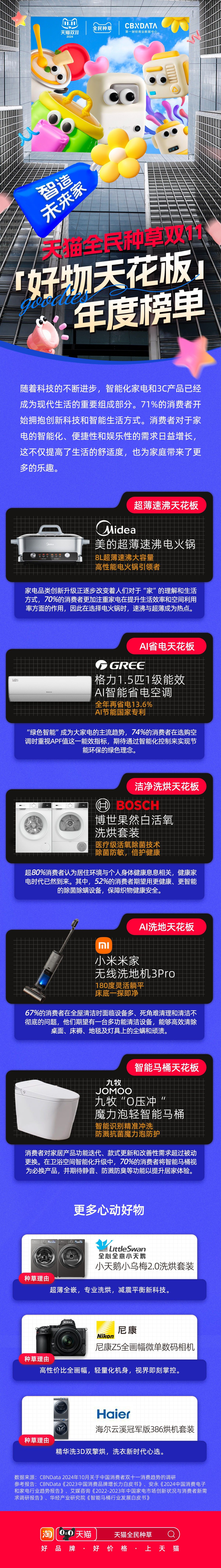更多细分场景下的智能家居好物同样陆续上榜,包括海尔云溪冠军版386烘机套装、小天鹅小乌梅2.0洗烘套装、尼康Z5全画幅微单数码相机等年度单品。