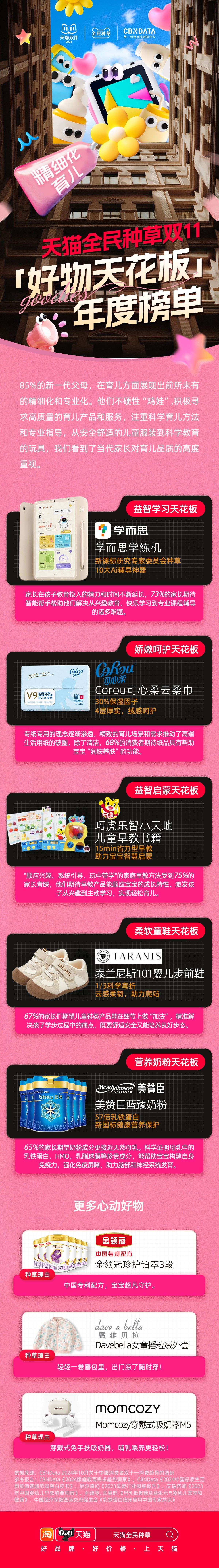 同步登上精细化育儿榜单的还有:Davebella女童摇粒绒外套、Momcozy穿戴式吸奶器M5、金领冠珍护铂萃3段等。从安全舒适的儿童服装到科学教育的玩具,我们看到了当代家长对于育儿品质的高度重视。